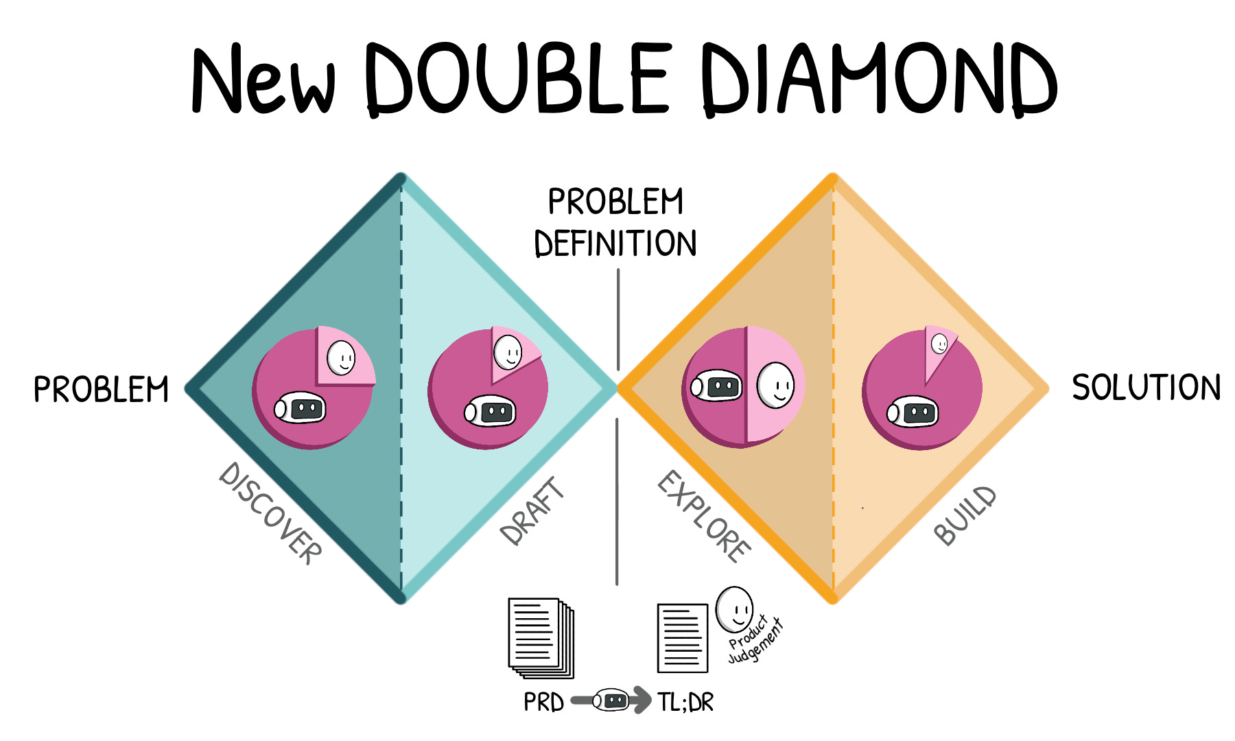 The classic double diamond — discover, define, develop, deliver — has been the organizing model for product work for twenty years. AI is reshaping each of its phases simultaneously.